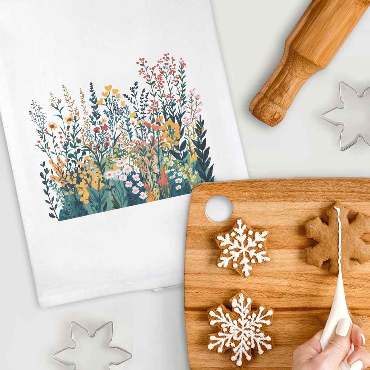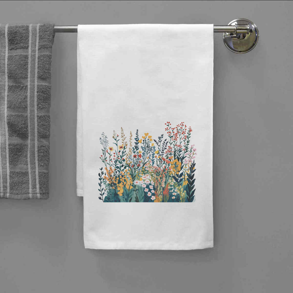 - White cotton tea towel with hanging loop