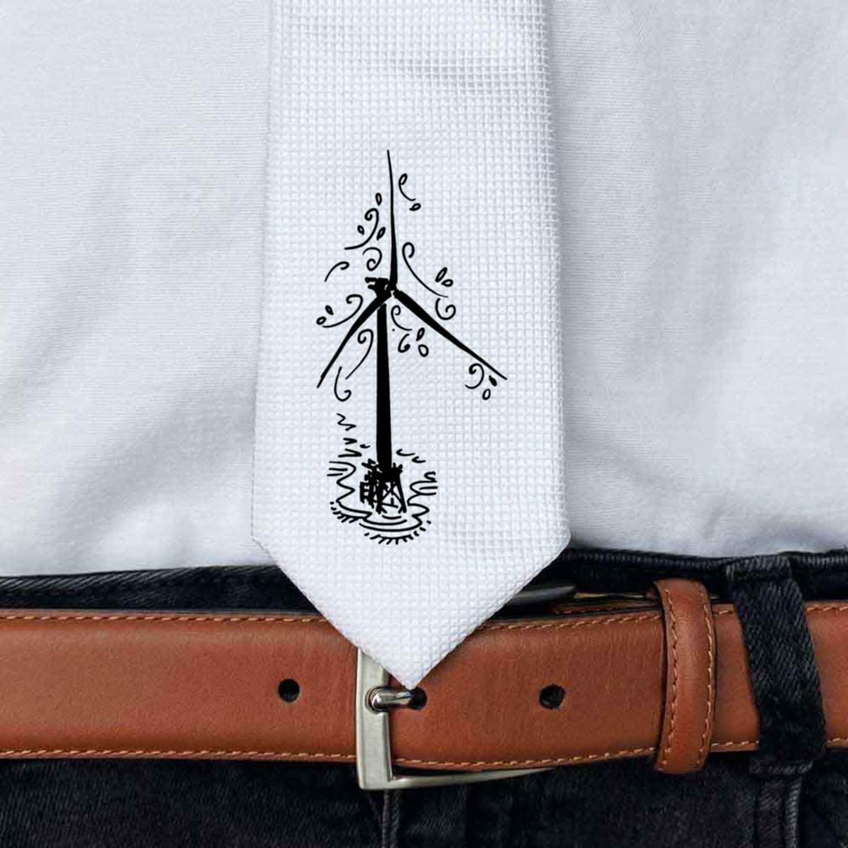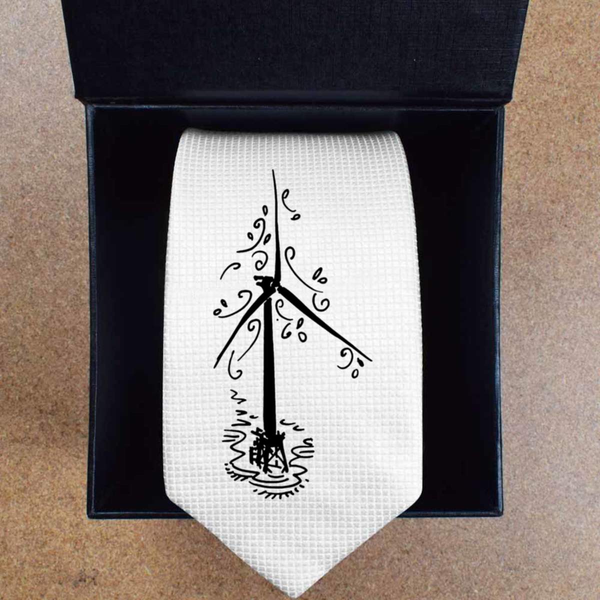 'Wind Turbine' White Tie / Necktie with Gift Box (AT00011264)