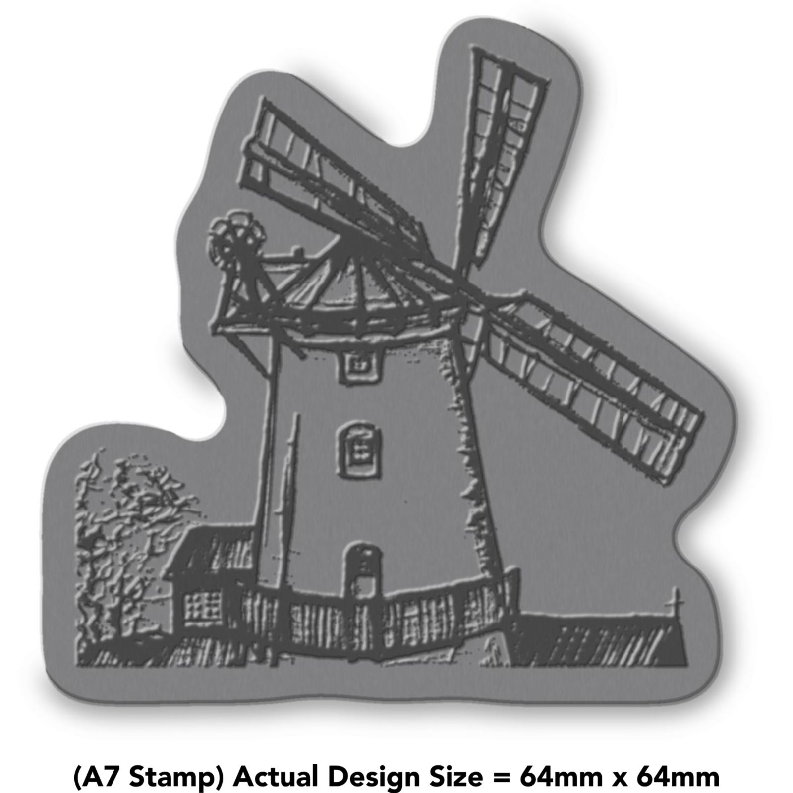 'Windmill Scene' Unmounted Rubber Stamp - For Crafting, Scrapbooking and Card Making (RS016060)