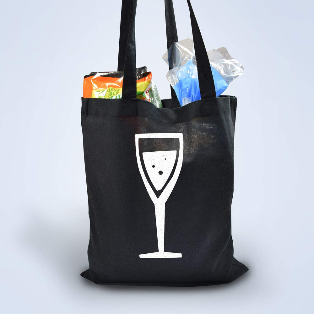 'Wine Glass' Classic Black Tote Shopper Bag (ZB00003943)