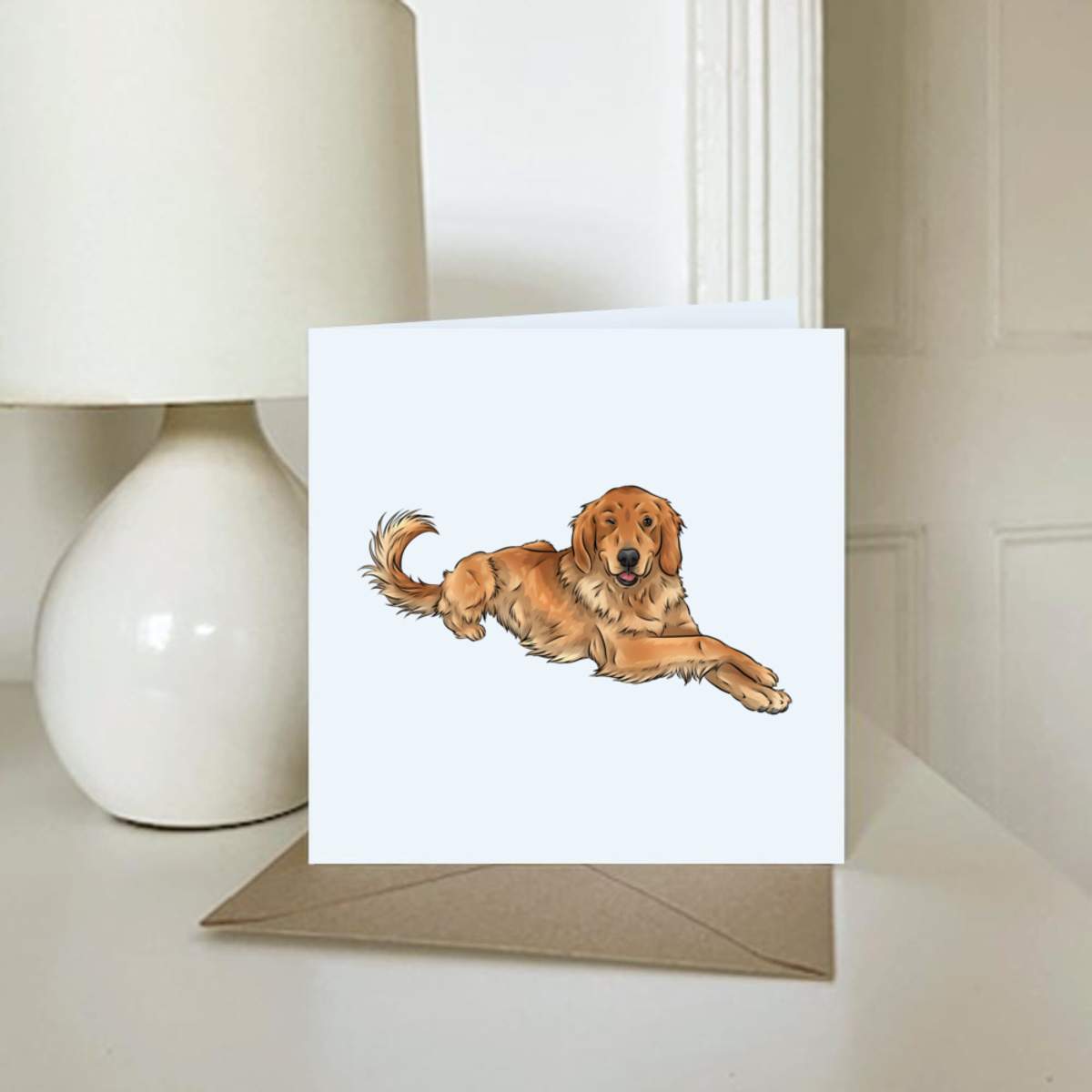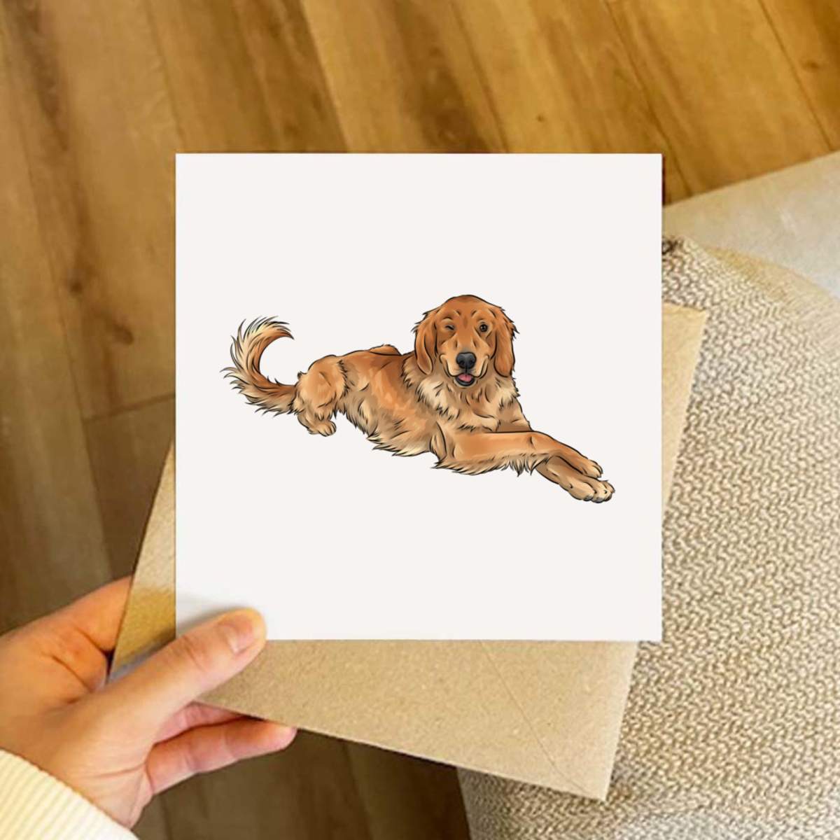 - Square greeting card supplied with a recycled brown envelope