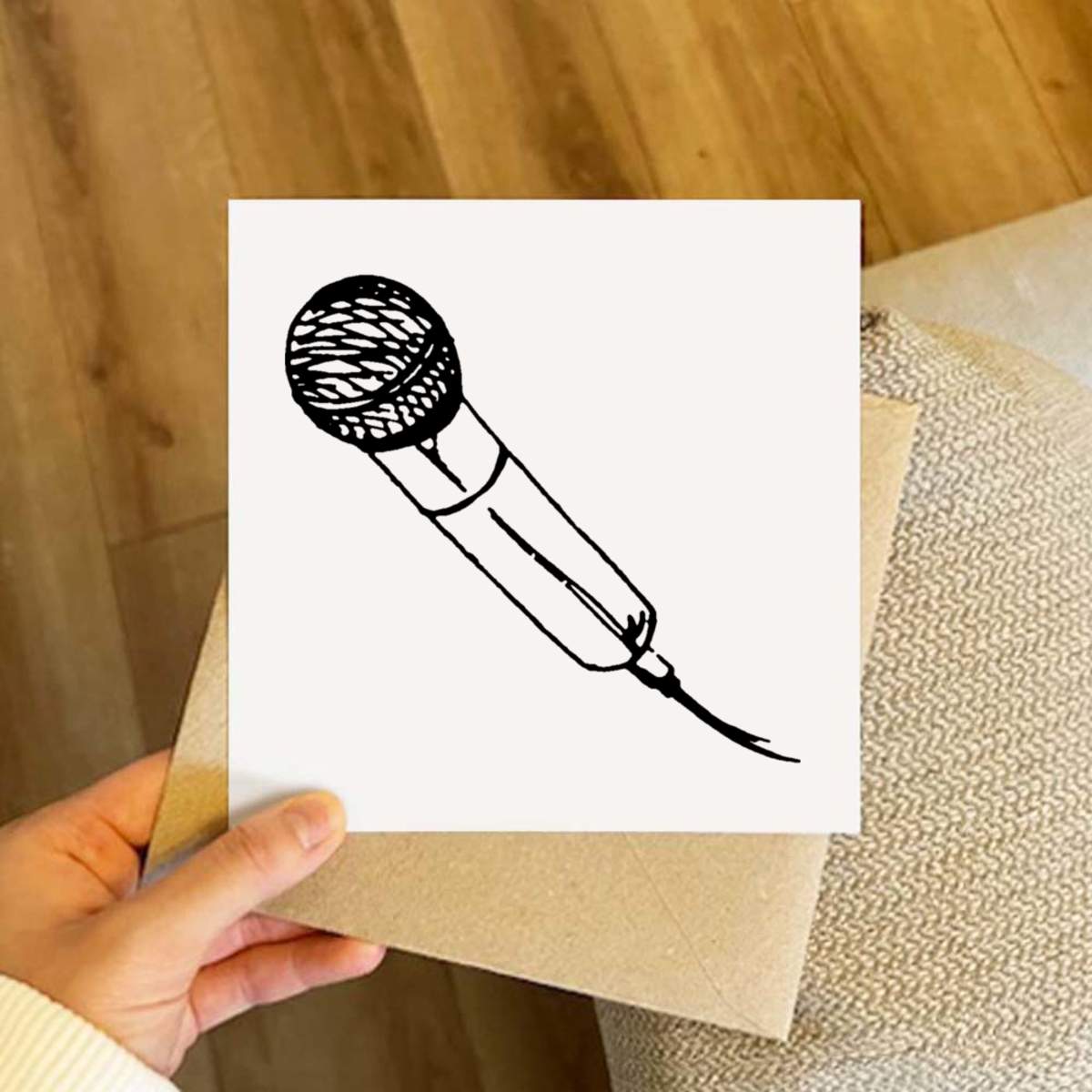 - Square greeting card supplied with a recycled brown envelope