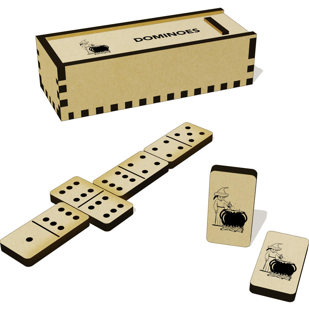 A full set of 28 MDF dominoes + an additional 6 blanks, complete with a slide top box to store them in.