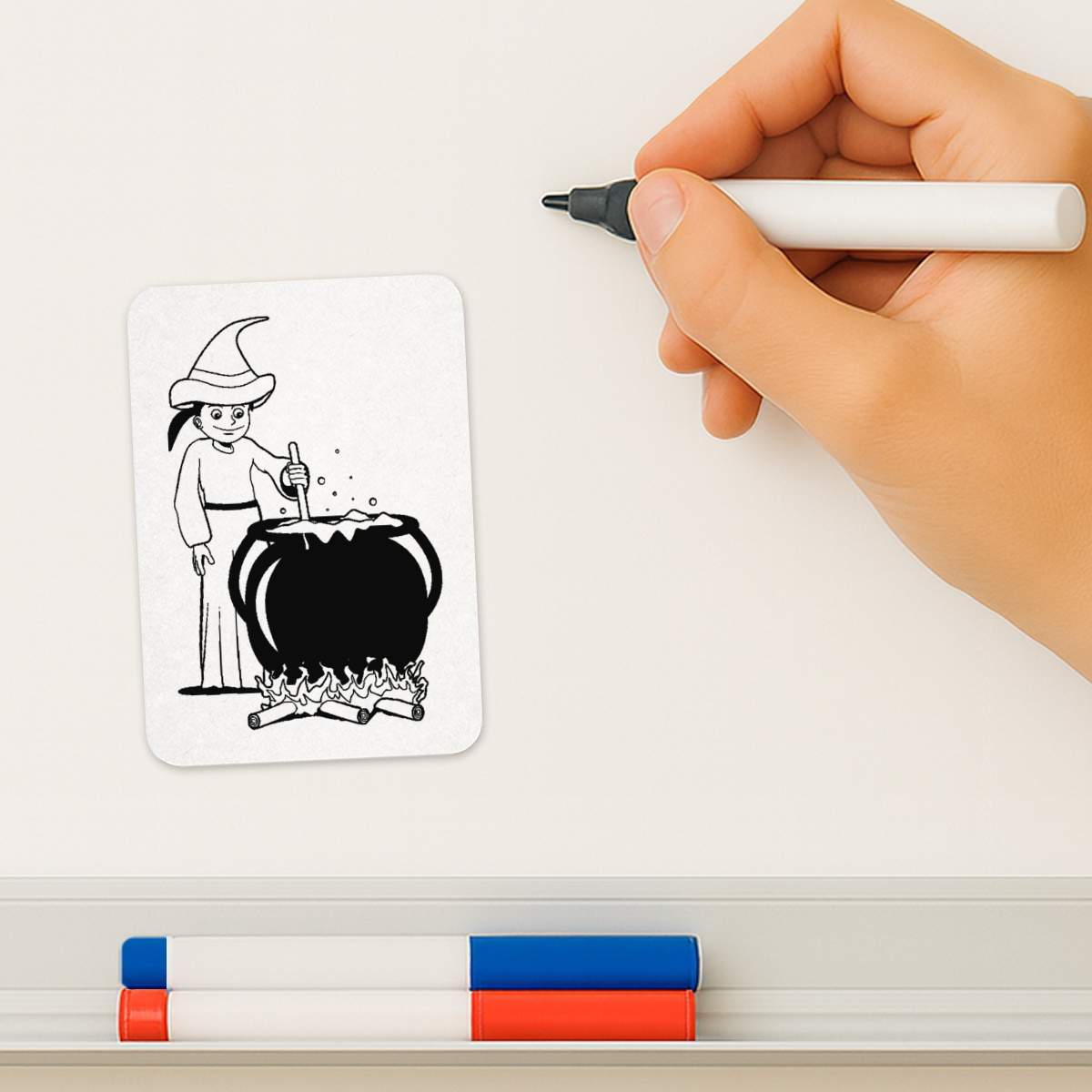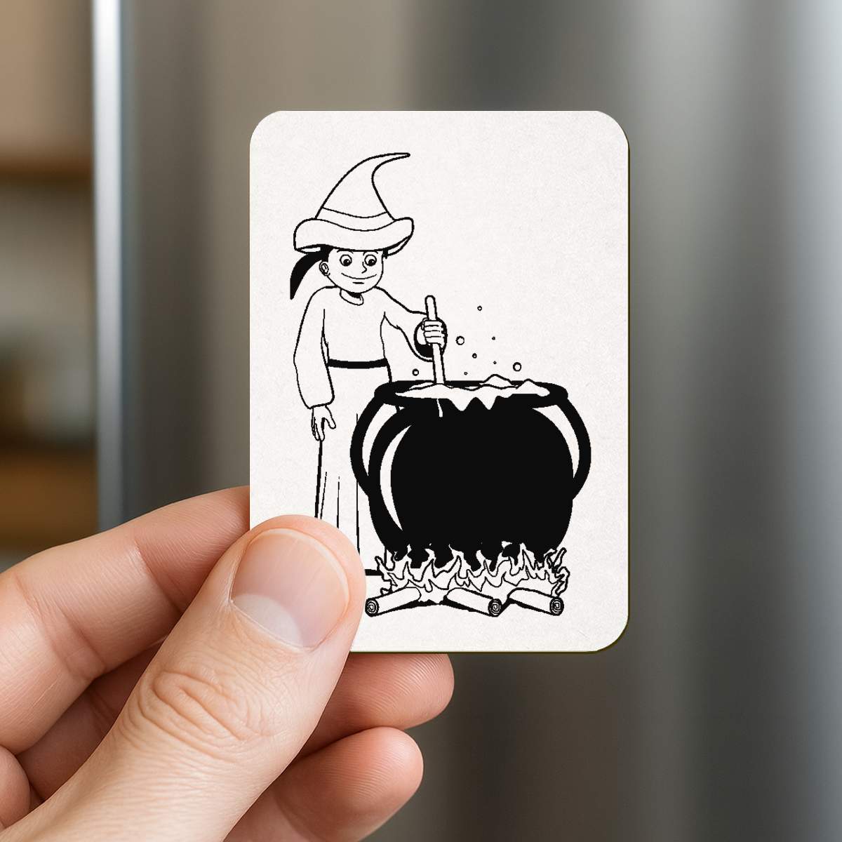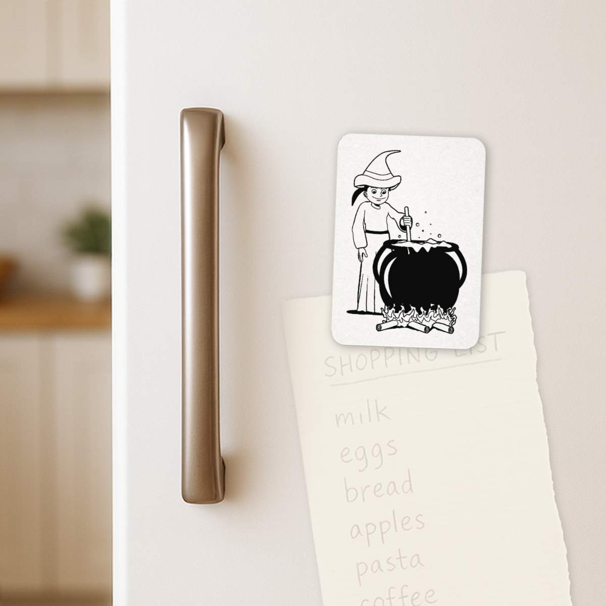 'Witch & Cauldron' Rectangular Fridge Magnet - Decorative Refrigerator & Whiteboard Magnet for Home, Kitchen or Office - 70mm x 49mm (FM00040100)