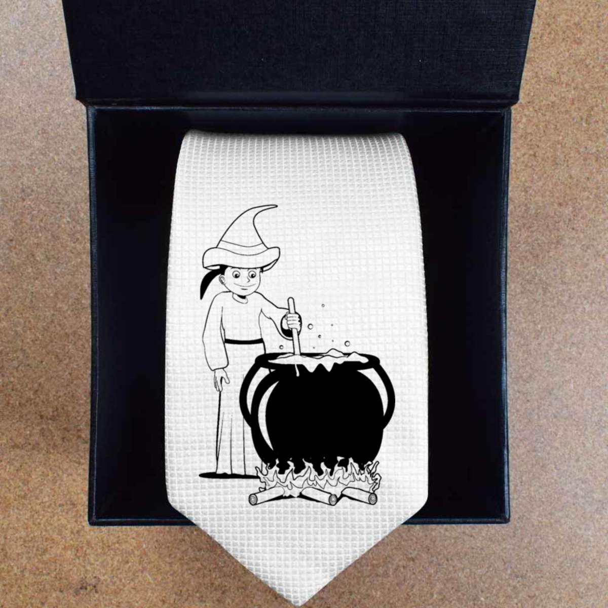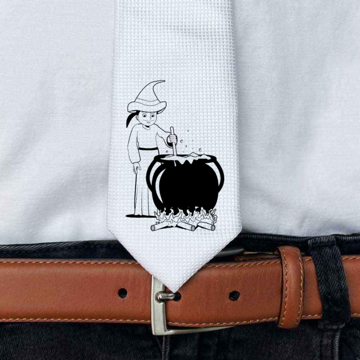 'Witch & Cauldron' White Tie / Necktie with Gift Box (AT00000265)