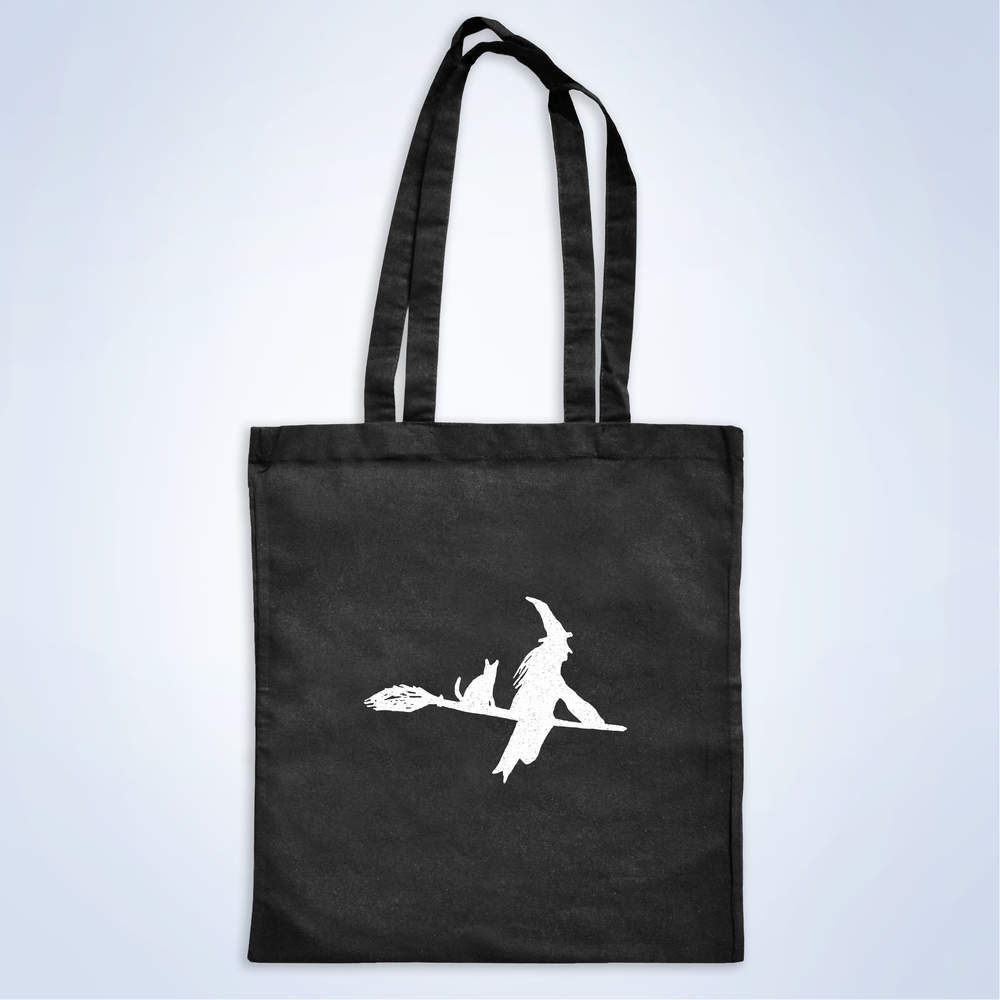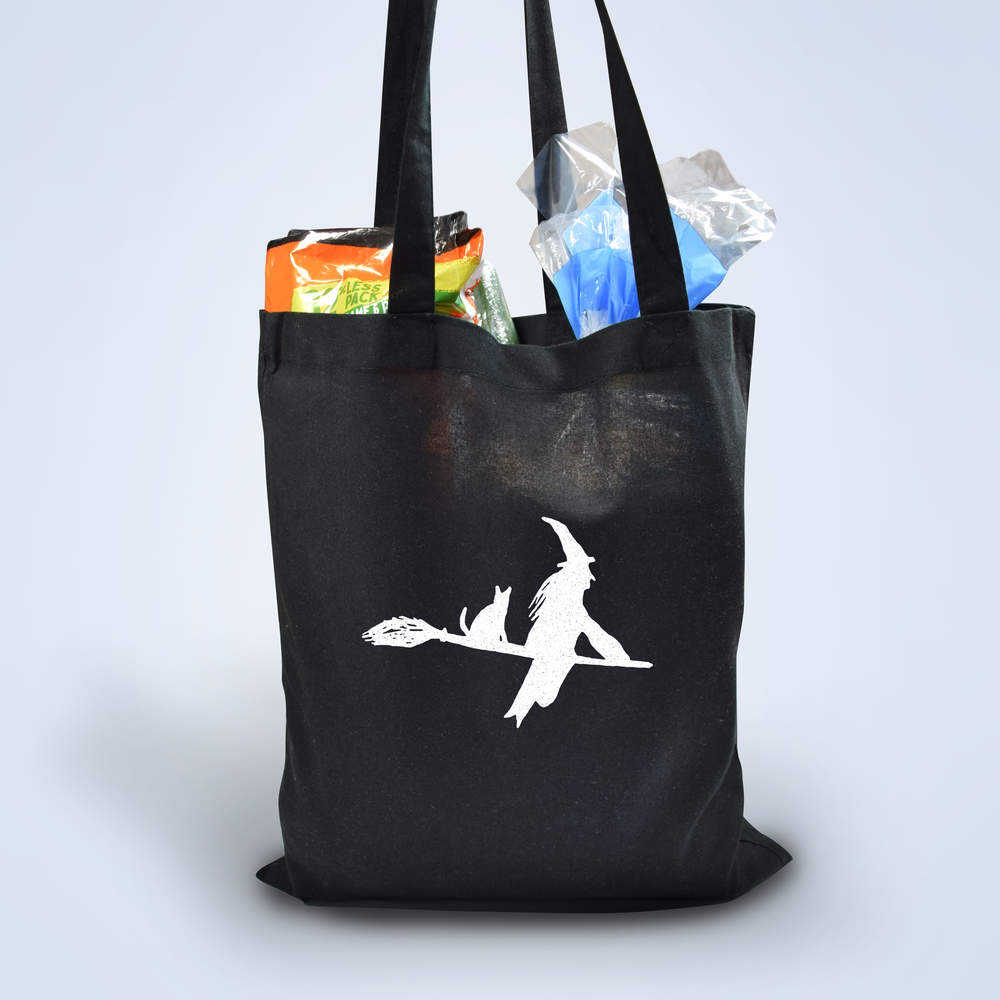 'Witch On A Broomstick' Classic Black Tote Shopper Bag (ZB00001182)