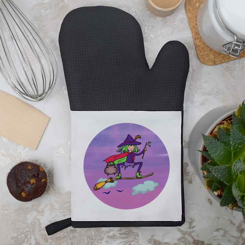 'Witch Riding Broomstick' Oven Glove / Mitt (OG00051705)
