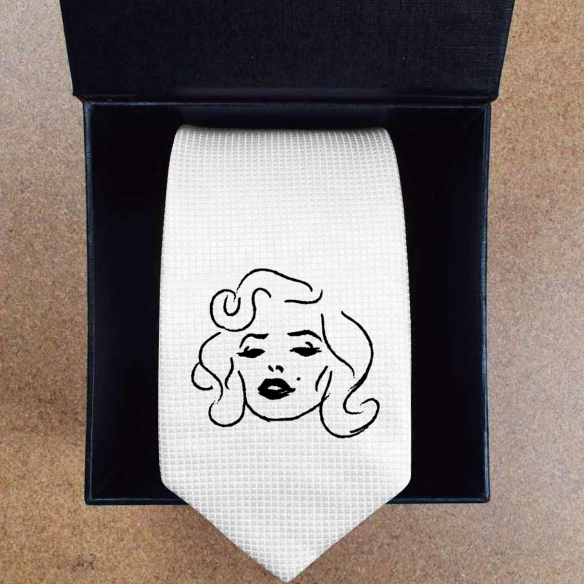 This stylish slim white tie is guaranteed to add class to any outfit. Printed on the front with a design from one of our talented designers, these ties are perfect for formal events, special occasions or making a statement at the office.