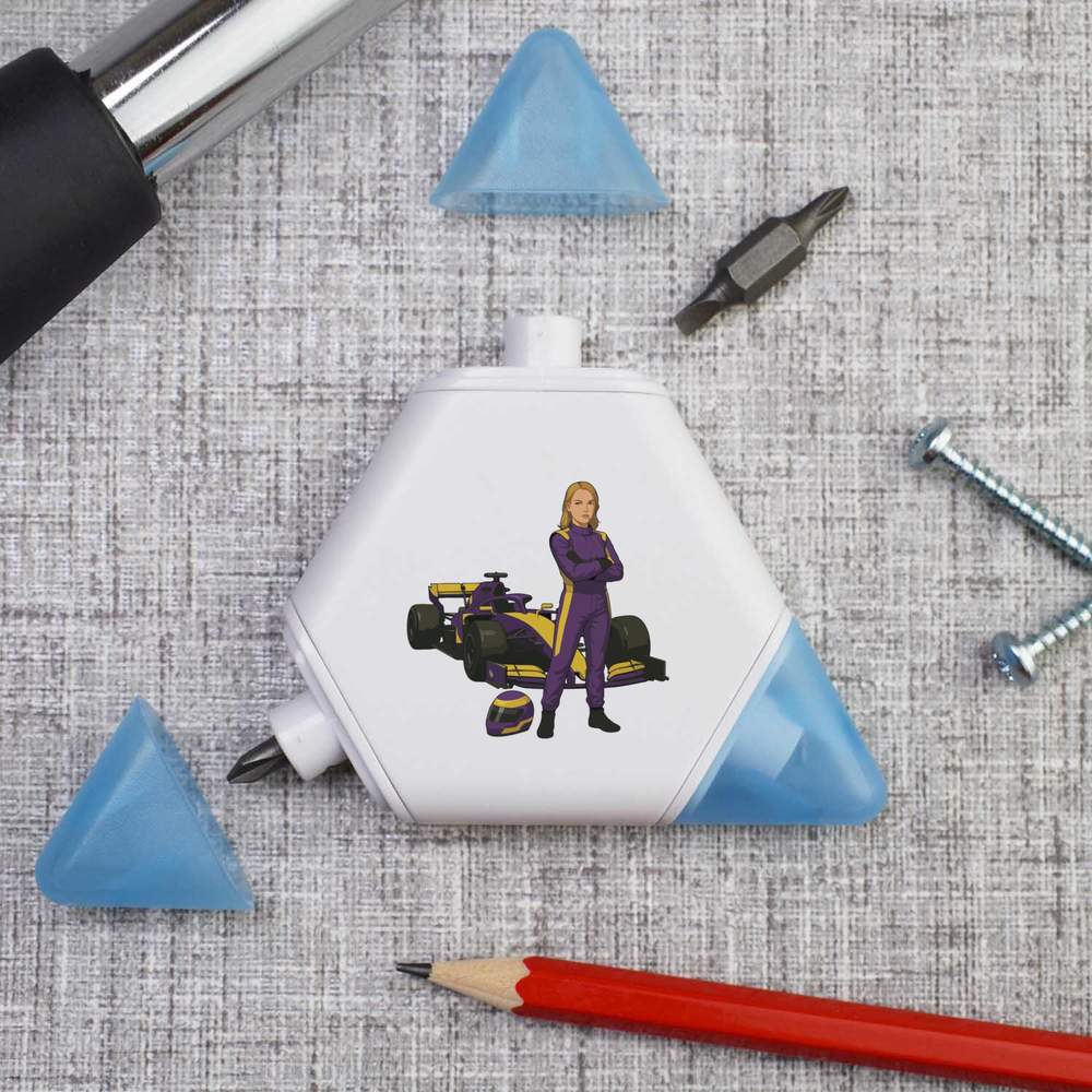 Our triangular compact multi tool is printed on one side with a unique design, making it a great gift for DIY lovers. This 3-in-1 tool set contains a tape measure and 2 different screwdriver attachments and each corner has a snap shut lid. One corner reveals a 1 meter tape measure, while the others hide two reversible screwdriver attachments, one larger and one smaller, both of which have a cross head on one end and a flat head on the other.