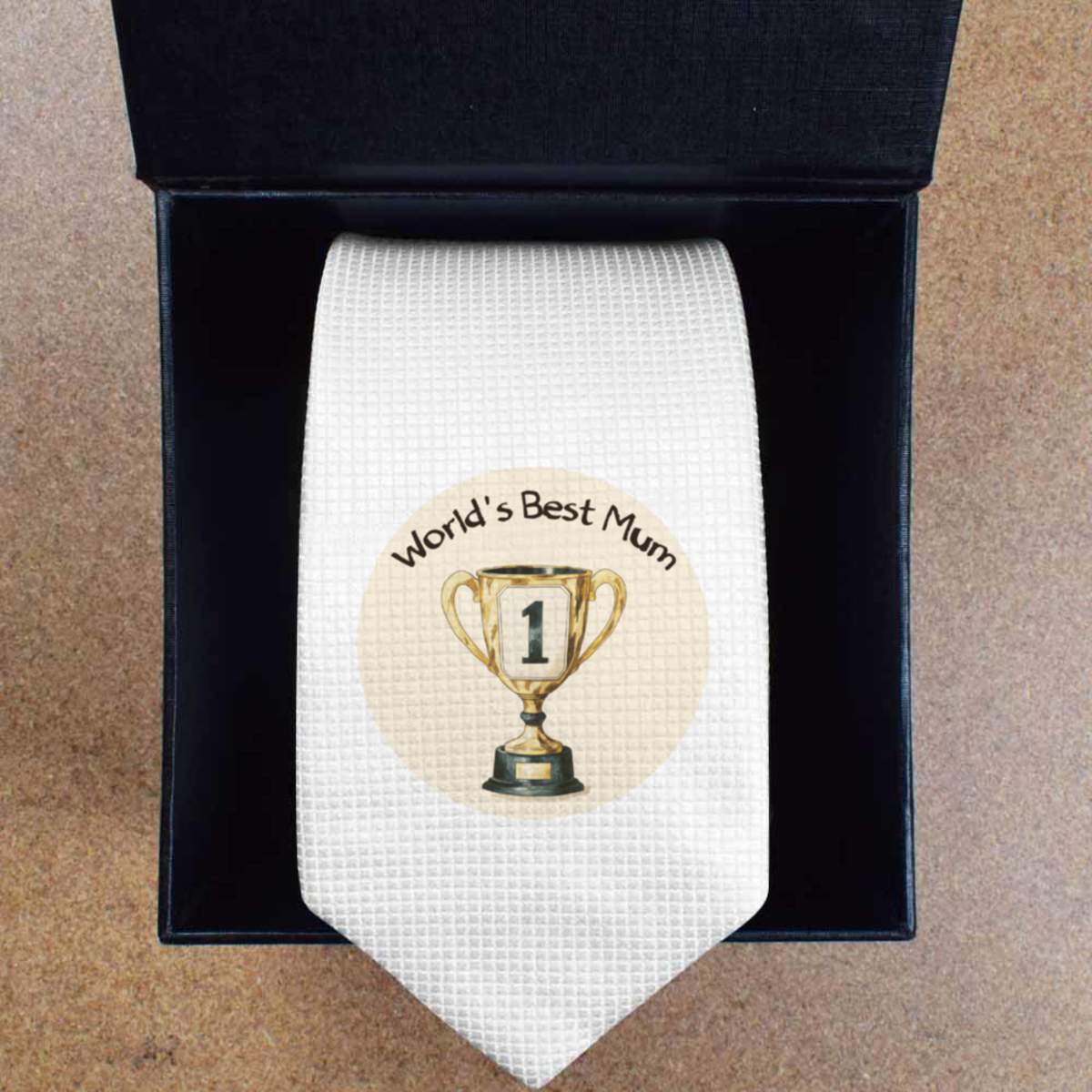 This stylish slim white tie is guaranteed to add class to any outfit. Printed on the front with a design from one of our talented designers, these ties are perfect for formal events, special occasions or making a statement at the office.