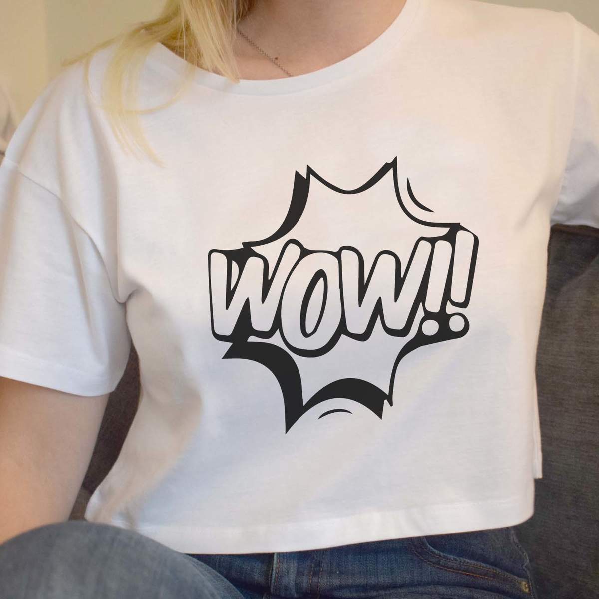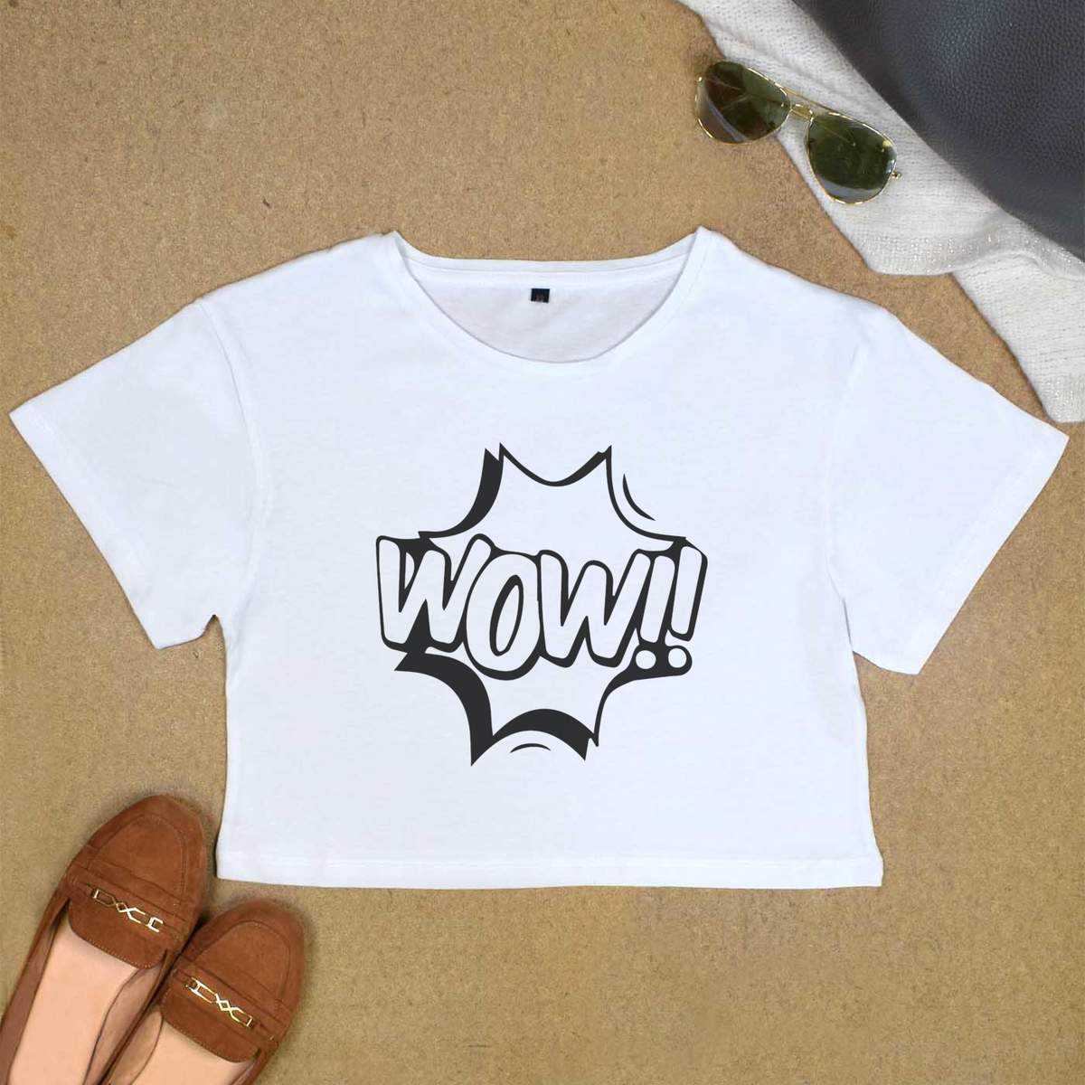 'Women's, Crop Top, White, Crew neck, Cropped'