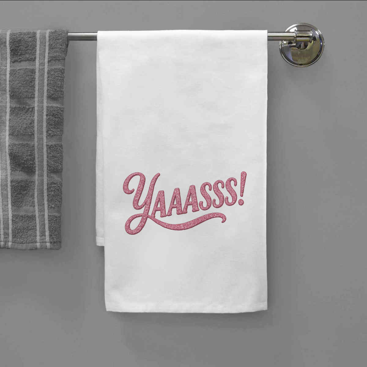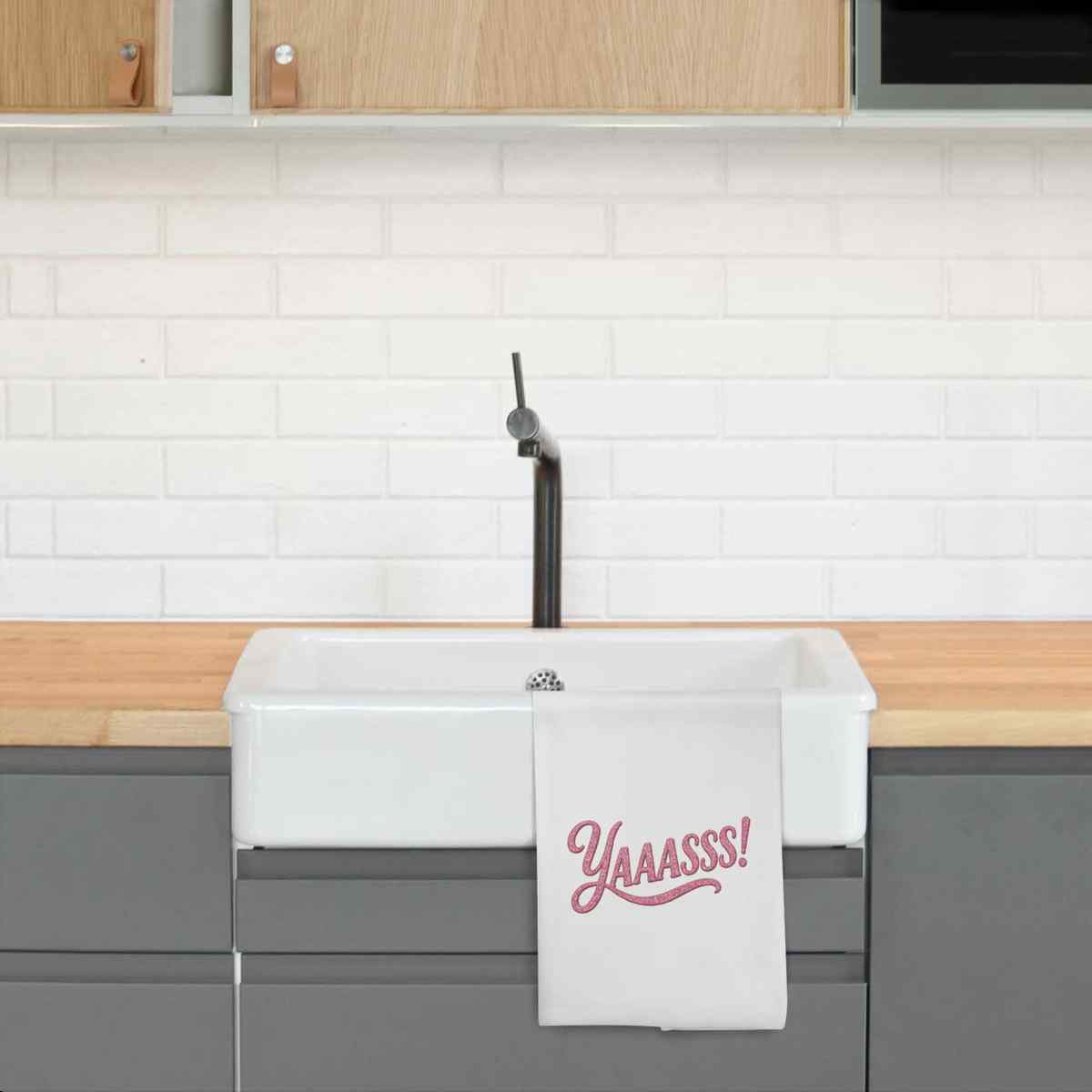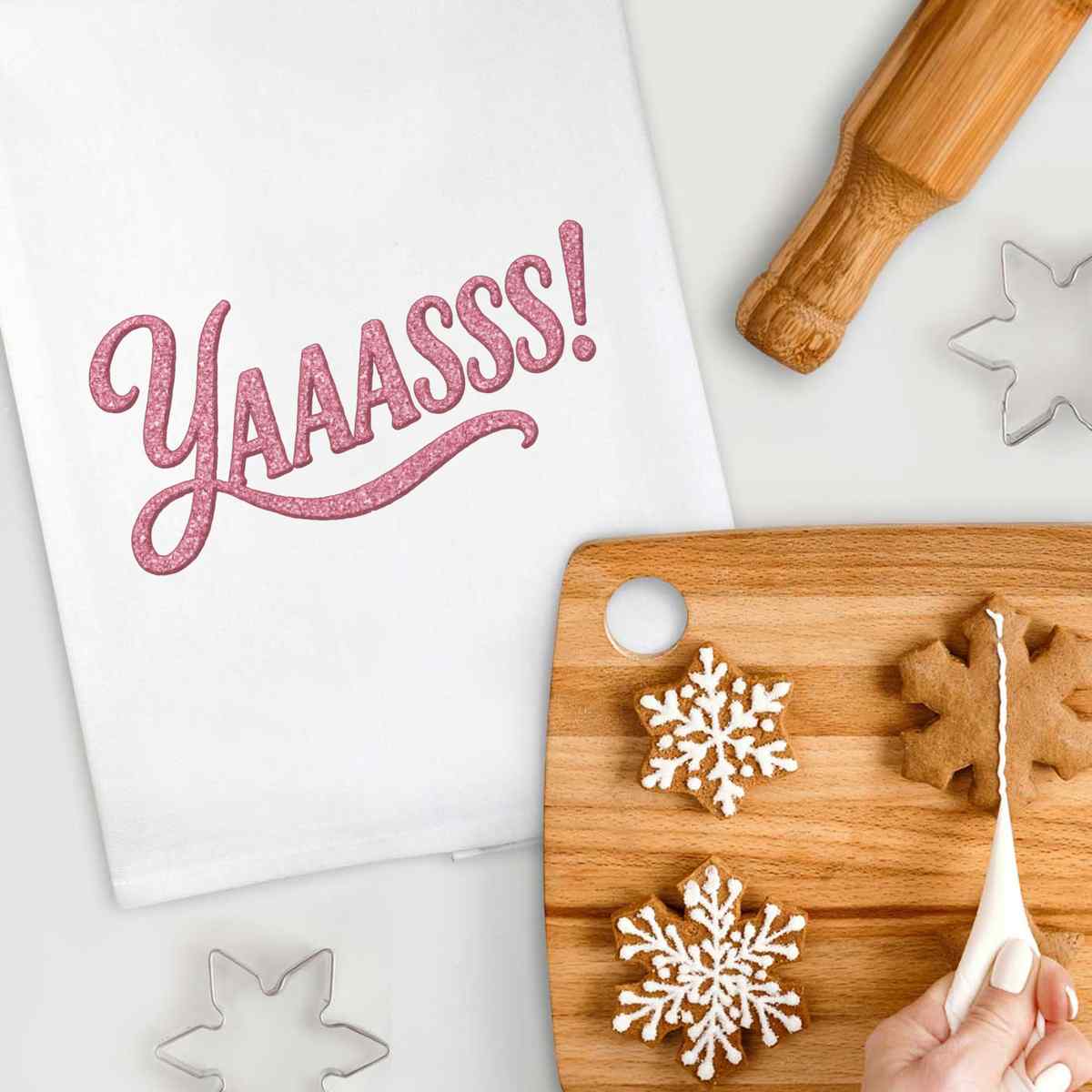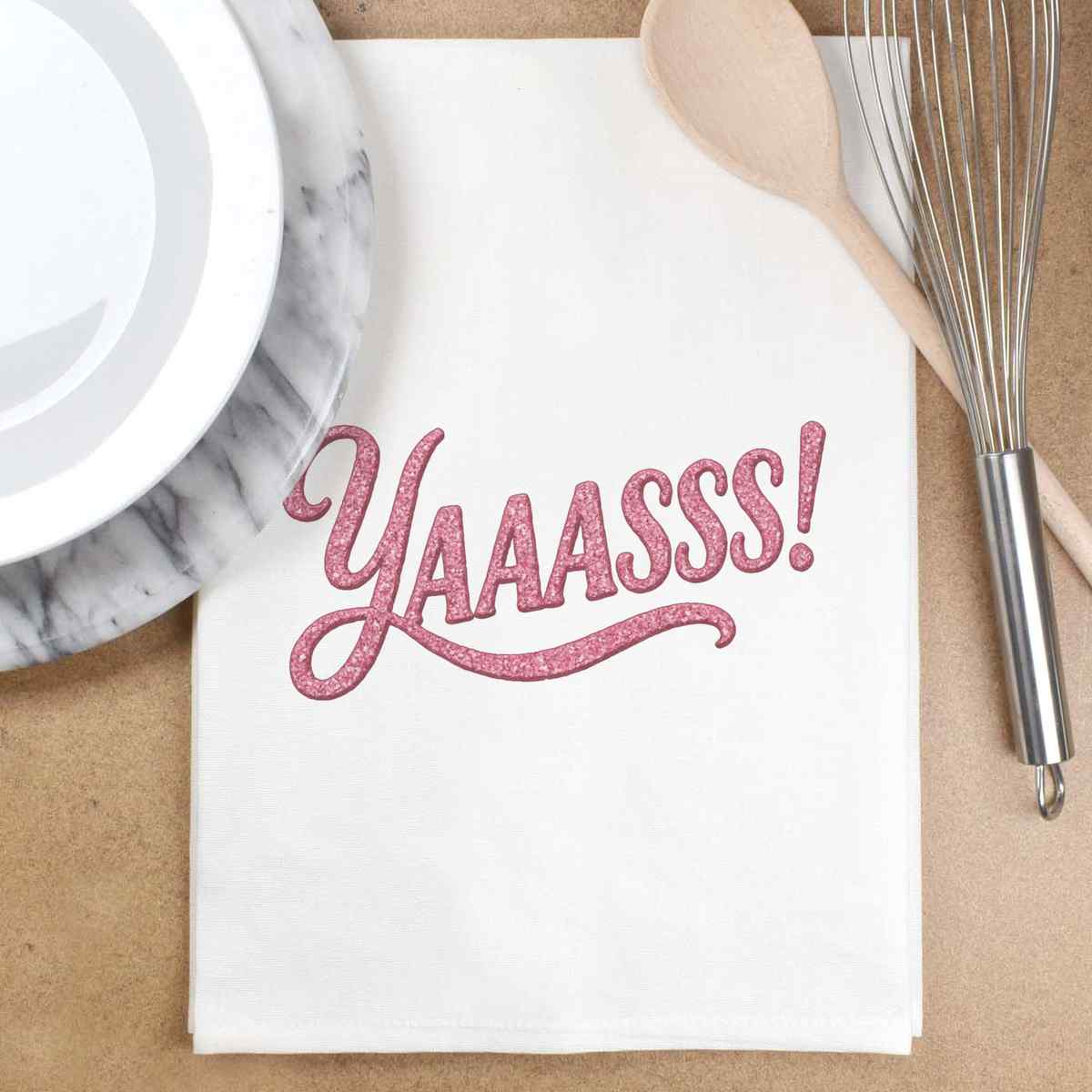 'The word 'yaaasss' in a girly font.'
