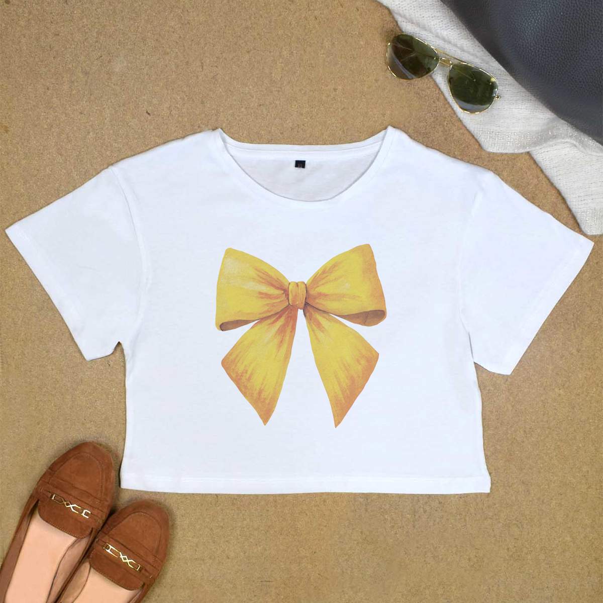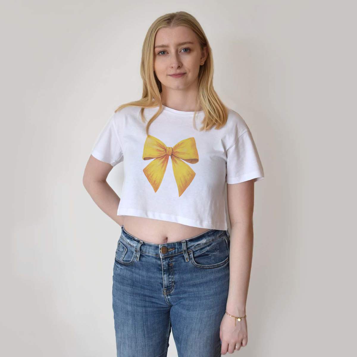 'Women's, Crop Top, White, Crew neck, Cropped'
