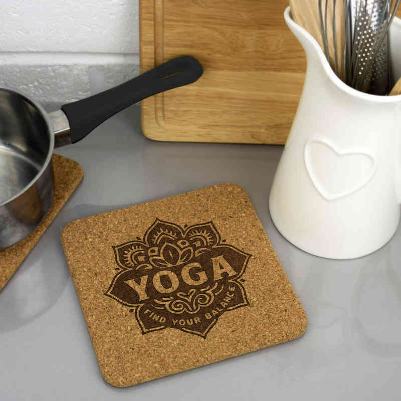 This wonderful square cork trivet / mat is a great addition to any kitchen. The cork is naturally non-slip and resistant to heat making it the perfect material to protect your kitchen worktops. Engraved on one side with a unique design, this product would make a fantastic gift and homeware essential.