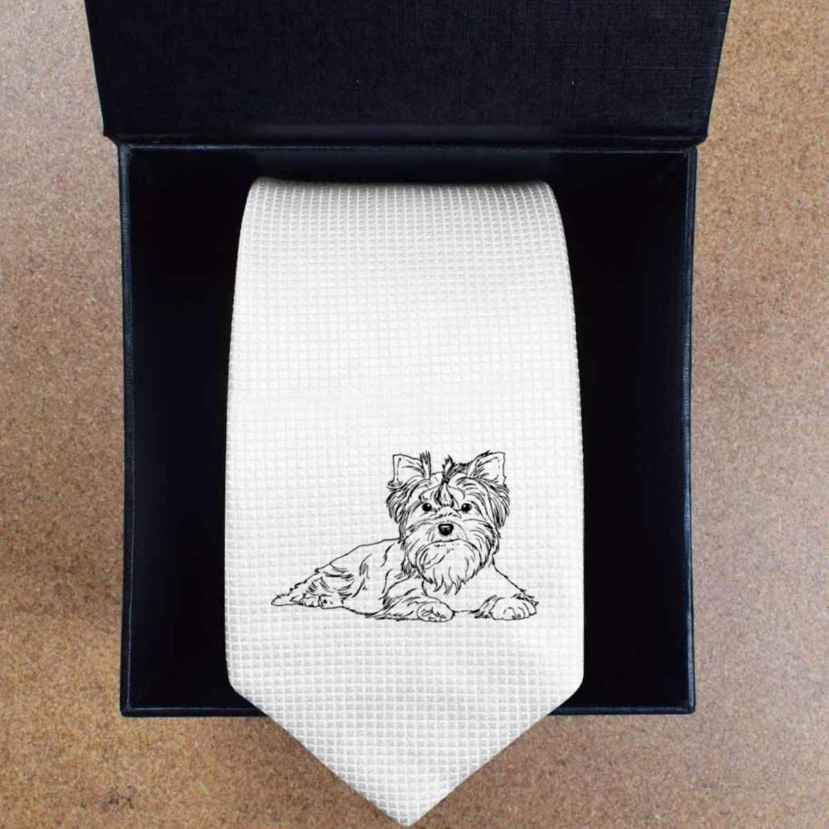'Yorkshire Terrier' White Tie / Necktie with Gift Box (AT00007947)
