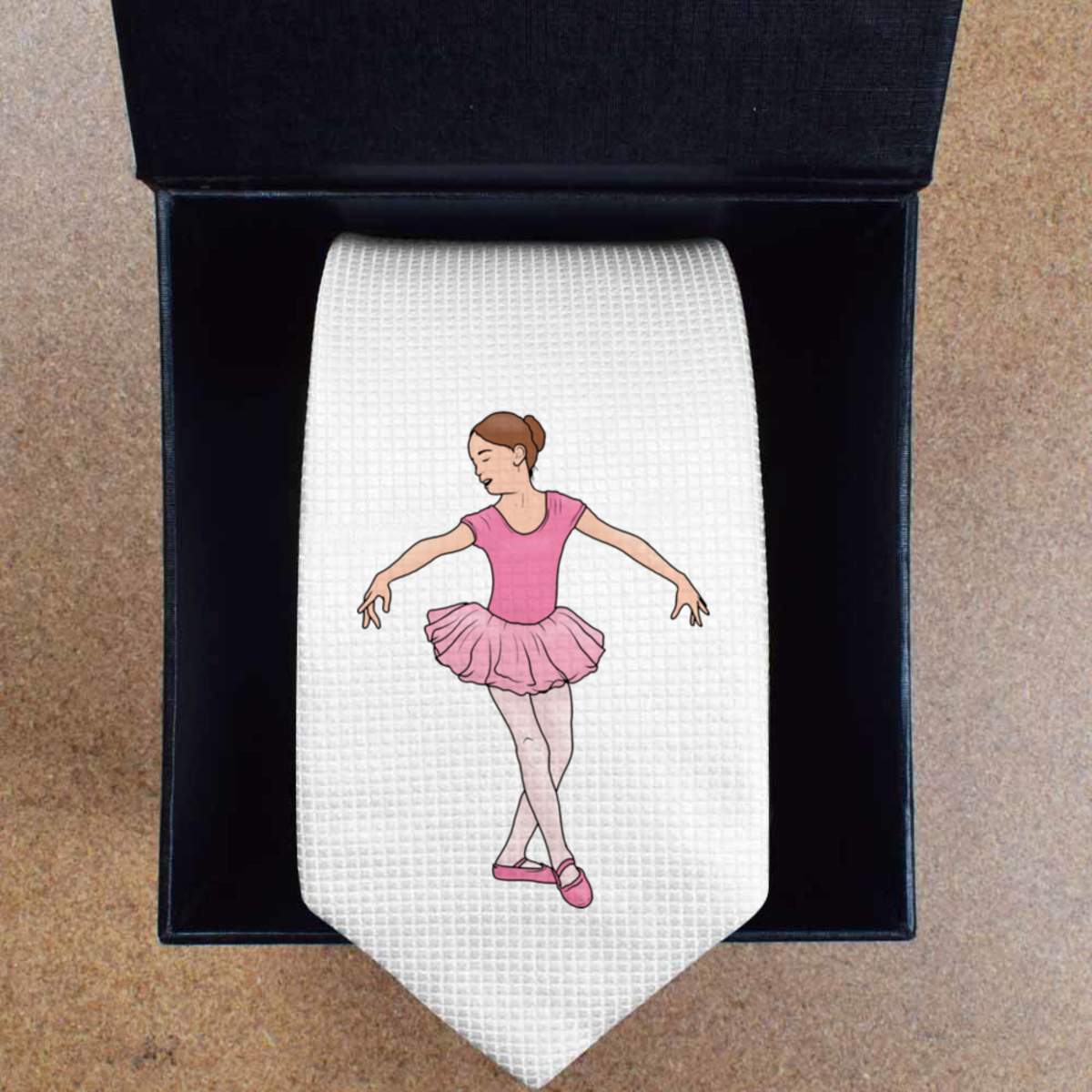 This stylish slim white tie is guaranteed to add class to any outfit. Printed on the front with a design from one of our talented designers, these ties are perfect for formal events, special occasions or making a statement at the office.