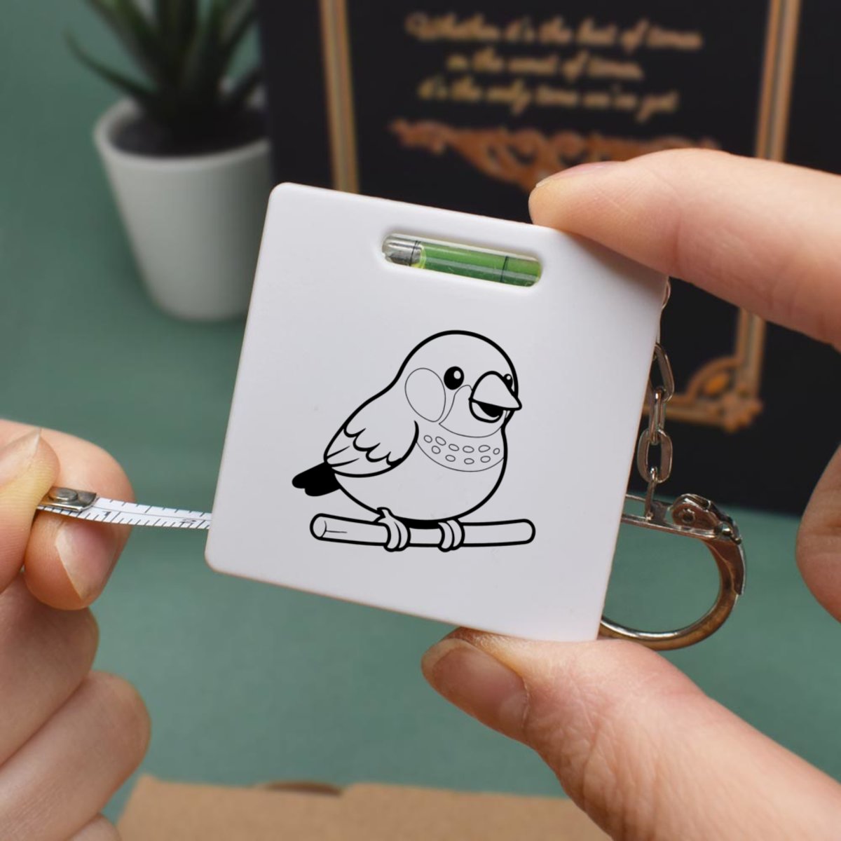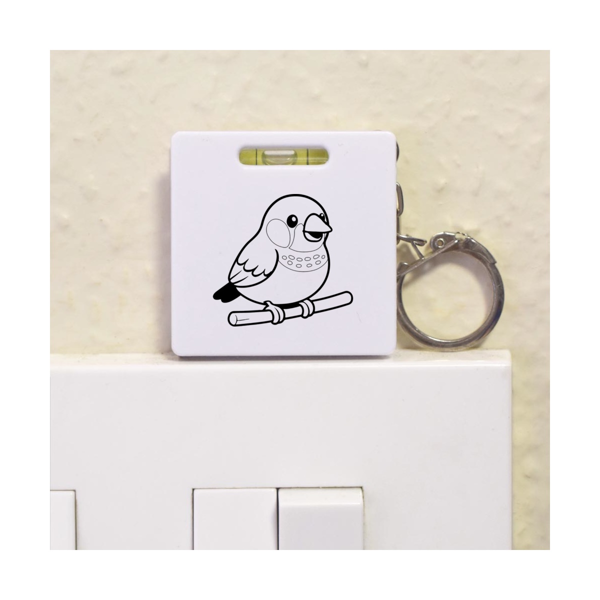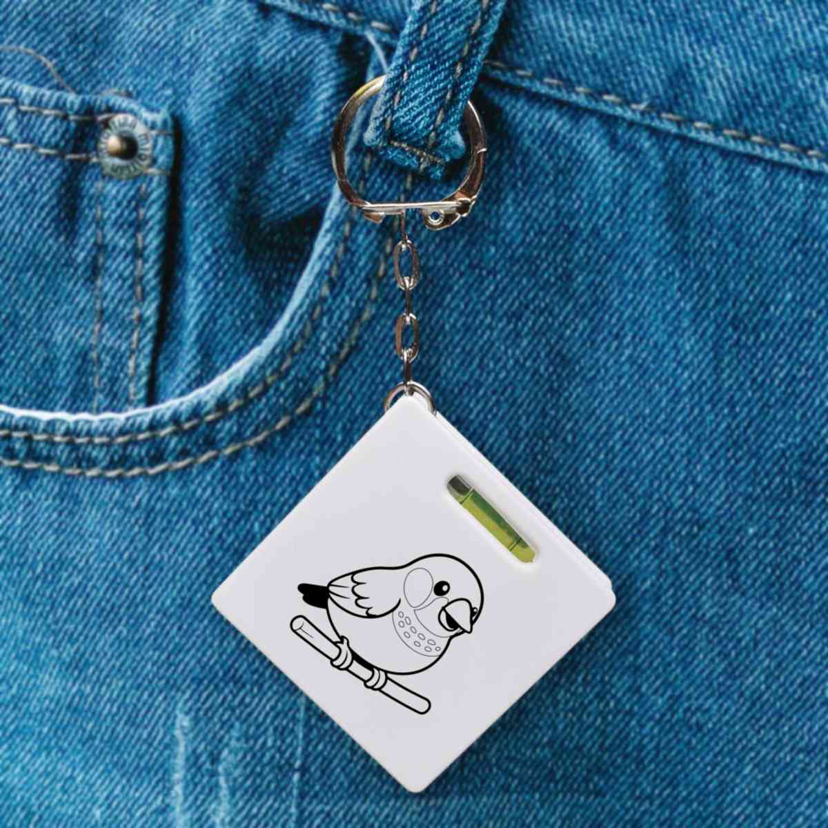 This multifunctional tool offers both a tape measure and spirit level in one handy little accessory. The retractable, 1 metre tape measure has both imperial and metric units, while the flat edges around its plastic casing provide the ability to check both vertical and horizontal surfaces with a mini spirit level. The compact and lightweight design makes it easy to carry around; simply attach with the keychain provided and whip it out when needed. Each keyring tape measure tool is printed on one side with a unique design.