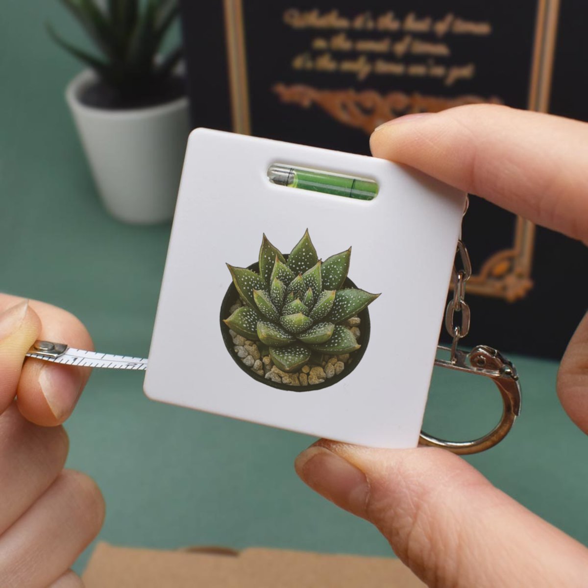 This multifunctional tool offers both a tape measure and spirit level in one handy little accessory. The retractable, 1 metre tape measure has both imperial and metric units, while the flat edges around its plastic casing provide the ability to check both vertical and horizontal surfaces with a mini spirit level. The compact and lightweight design makes it easy to carry around; simply attach with the keychain provided and whip it out when needed. Each keyring tape measure tool is printed on one side with a unique design.