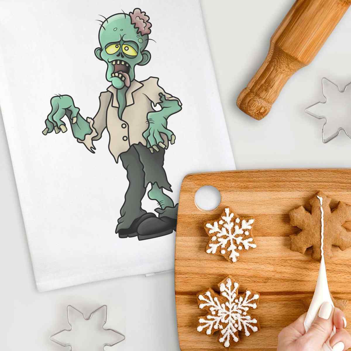 'Zombie' White Cotton Tea Towel / Dish Cloth (TW00019191)